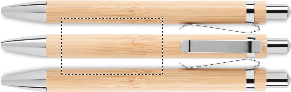 Pitkäikäinen musteeton painonappikynä, jonka runko on bambua kromisilla yksityiskohdilla. Kynä kirjoittaa grafiittikärjellä, mikä tekee siitä erinomaisen ympäristöystävällisen vaihtoehdon perinteiselle kynälle. Koska bambu on luonnontuote, sen väri ja koko voivat vaihdella hieman tuotteittain, mikä saattaa vaikuttaa merkkauksen lopputulokseen.