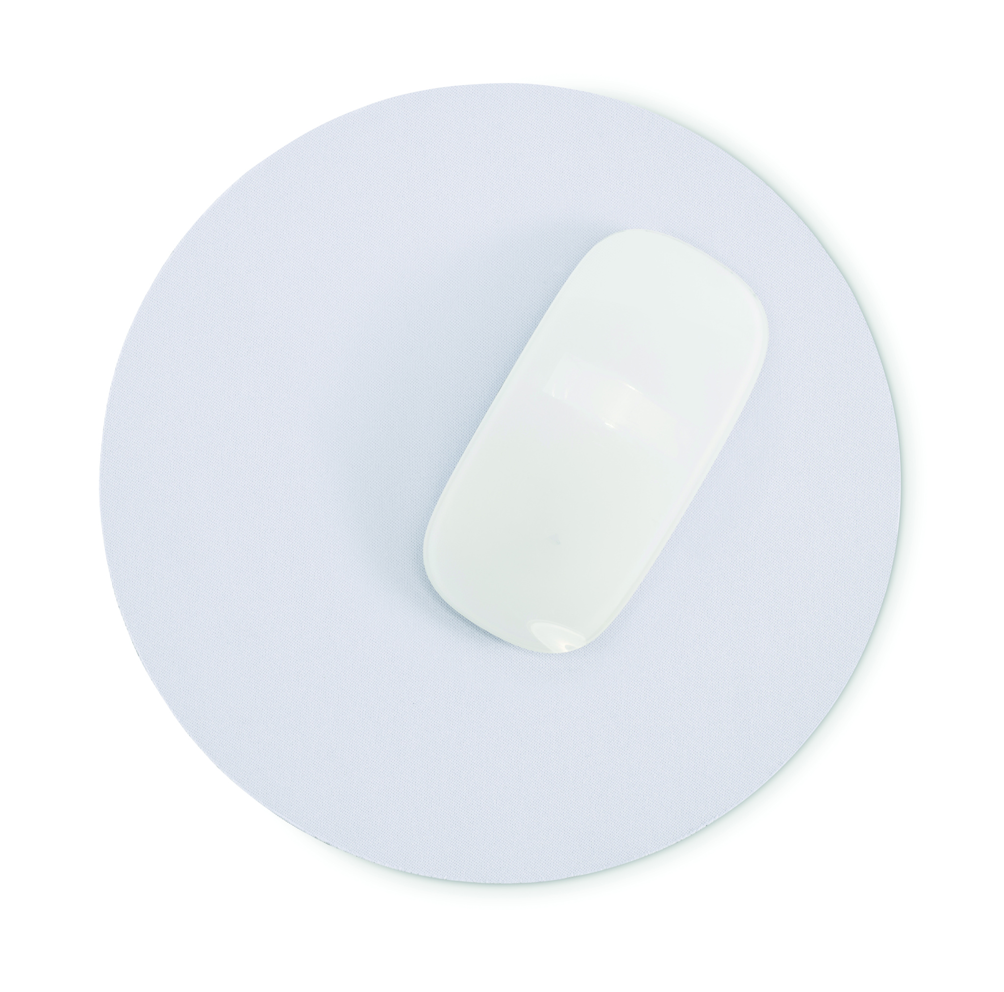 Sublimaatioon tarkoitettu tietokoneen hiirimatto, jossa polyesteripinta ja liukumaton pohja kumia. Halkaisija 21 cm.