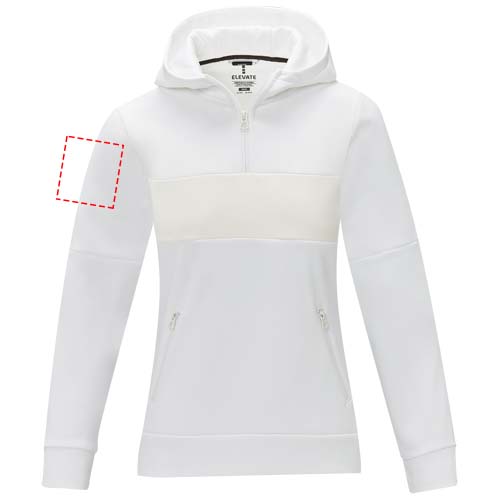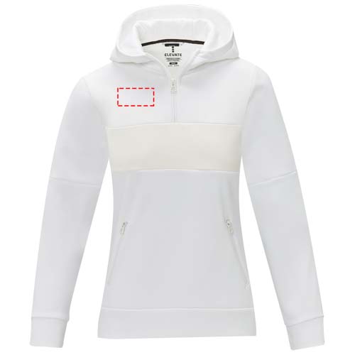 Naisten puolivetoketjullinen anorakkihupullinen Sayan-svetari – ainutlaatuinen yhdistelmä suorituskykyä ja tyyliä. Anorakkimuotoilussa yhdistyvät muoti ja toiminnallisuus, ja siinä on neljännesvetoketju, joka mahdollistaa monipuolisen kerrospukeutumisen. Valmistettu 350 g/m²:n polyesterin ja Sorona®-neuloksen sekoituksesta. Sorona®-kuitu tekee takista ympäristöystävällisen vaihtoehdon lisäämällä siihen kestävän kehityksen mukaisen elementin suorituskyvystä tinkimättä. 280T ripstop-nailonista valmistettu etupaneelin kontrastikangas täydentää takkia kestävyydellään ja tekstuurillaan ja on ihanteellinen paikka esitellä tuotemerkkiäsi. Olitpa sitten lähdössä seikkailemaan luontoon tai vain suorittamassa arkirutiinejasi, hupullisessa Sayan-svetarissa yhdistyvät vaivattomasti muoti ja toiminnallisuus. Tämä svetari myötäilee vartaloa, mikä antaa sille naisellisen ilmeen.