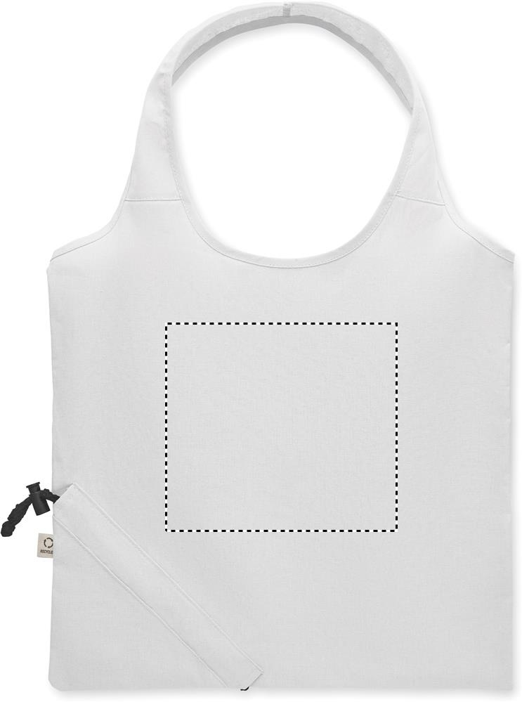 Taitettava ostoskassi (70 % kierrätettyä puuvillaa ja 30 % RPET) valmistettu kierrätetystä ennen kulutusta valmistettavista puuvillasta. 140 g/m².