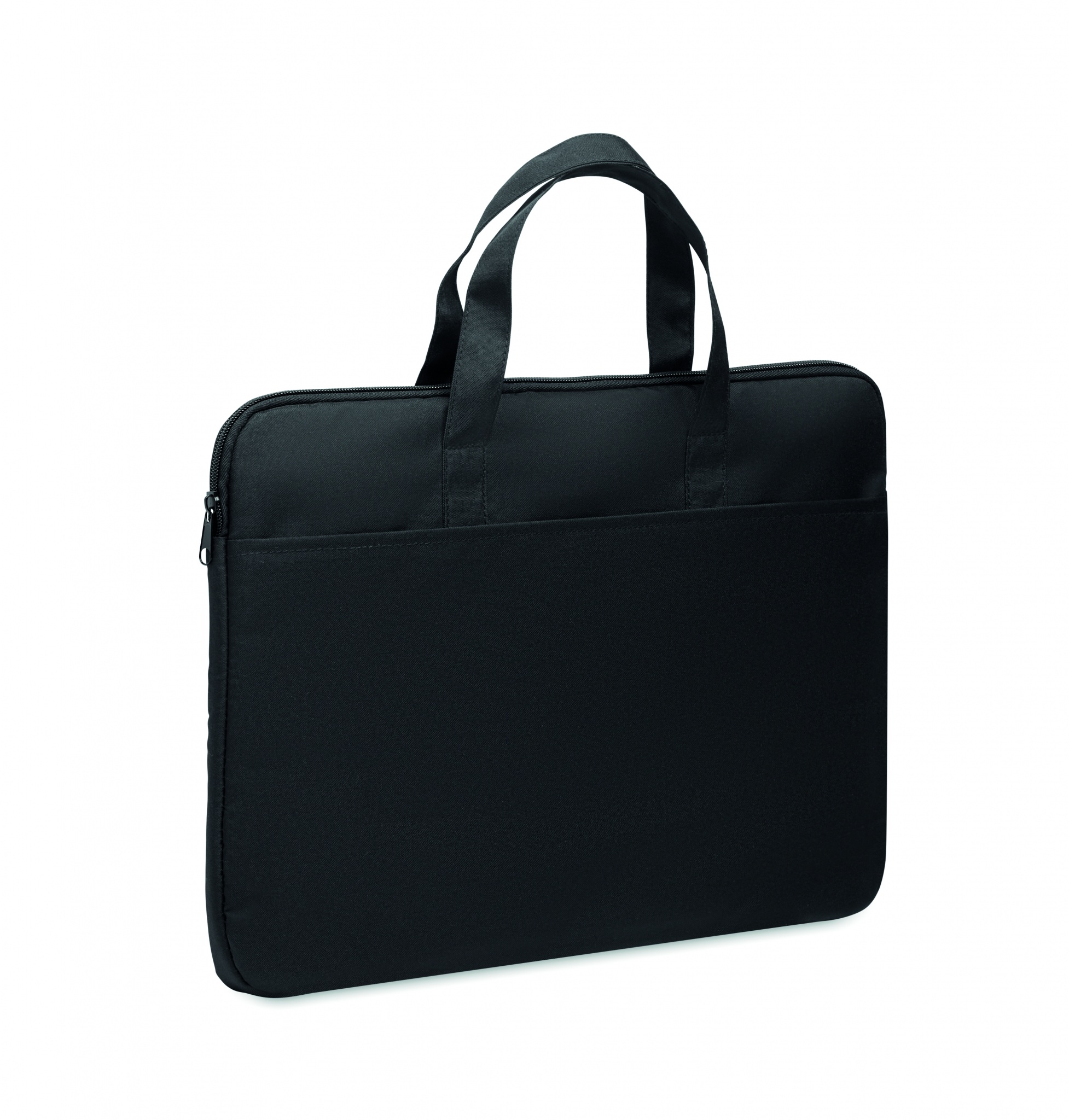 15 colių nešiojamojo kompiuterio krepšys iš 300D RPET poliesterio su rankenomis ir bagažo praėjimo dirželiu.