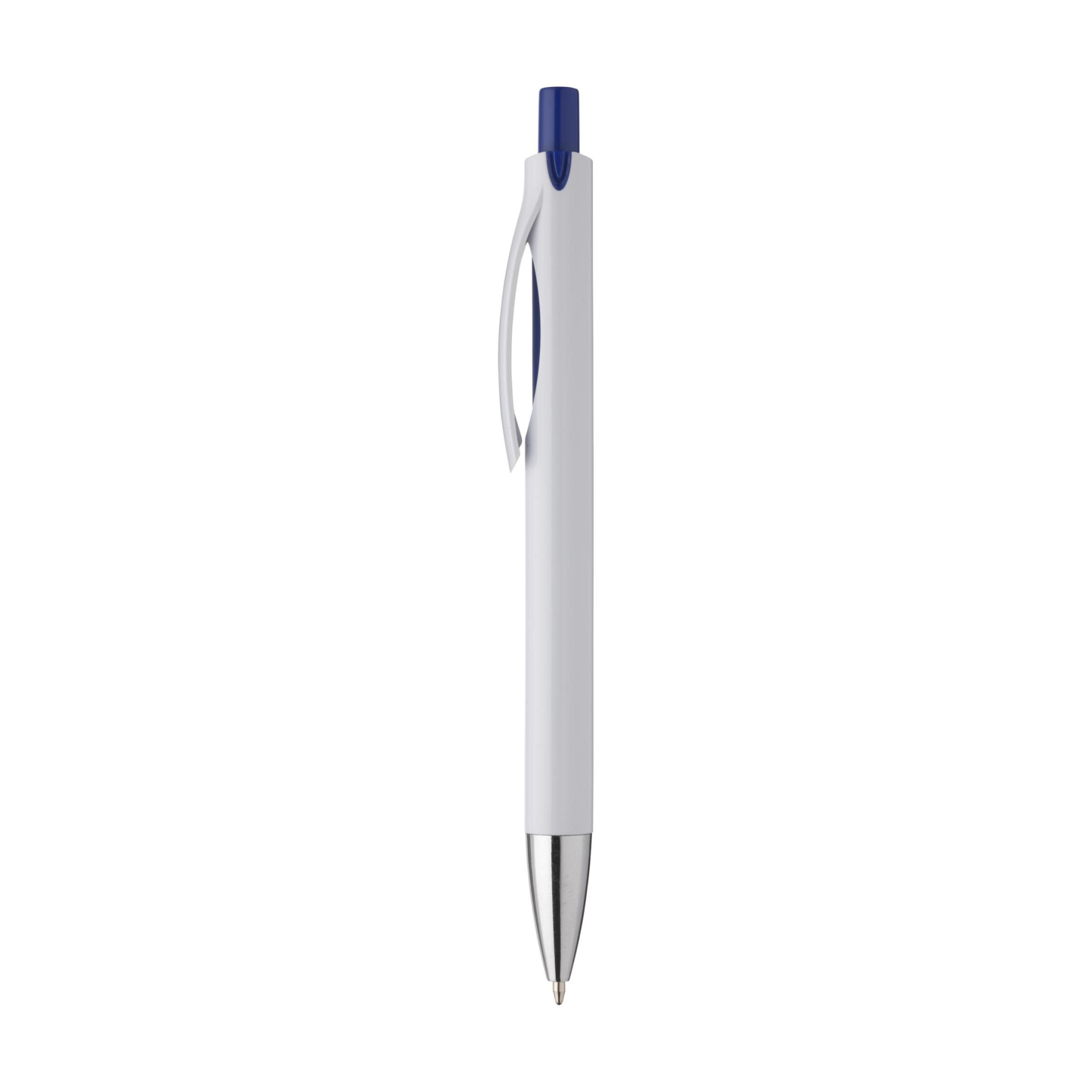 Mėlyno rašalo tušinukas stilingo dizaino: šio rašiklio korpusas ir segtukas yra integruoti. Ryškus spalvų akcentas po klipu. Ši akcentinė spalva atitinka mygtuko spalvą.