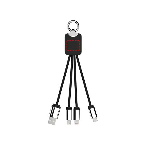 Šviečiantis logotipas įkrovimo laidas su guma ir metaline apdaila su trimis jungtimis (Type-C, Android, iPhone). Vienu metu galima įkrauti iki trijų įrenginių. Kabelių ilgis (su kištukais): 10 cm. Perdirbto PET plastiko kabelis ir pakuotė yra pagaminti iš perdirbto popieriaus ir perdirbto plastiko.