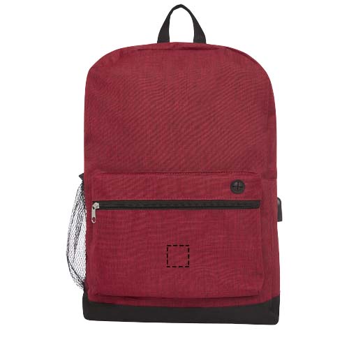 Передняя панель рюкзака для ноутбука оформлена с эффектом меланжевой расцветки, а нижняя часть и задняя панель окрашены в черный цвет. Оснащен большим главным отделением на молнии с чехлом для ноутбука 15,6" и передним отделением на молнии для быстрого доступа к мобильным устройствам. Поставляется с портом для USB, включая кабель USB-A с 1 выходным разъемом и 1 – входным. Имеет удобные плечевые ремни с подкладкой, ручку и сетчатый карман для бутылки с водой. Реальный цвет изделия может незначительно отличаться в зависимости от особенностей набивки, окраски и структуры ткани.