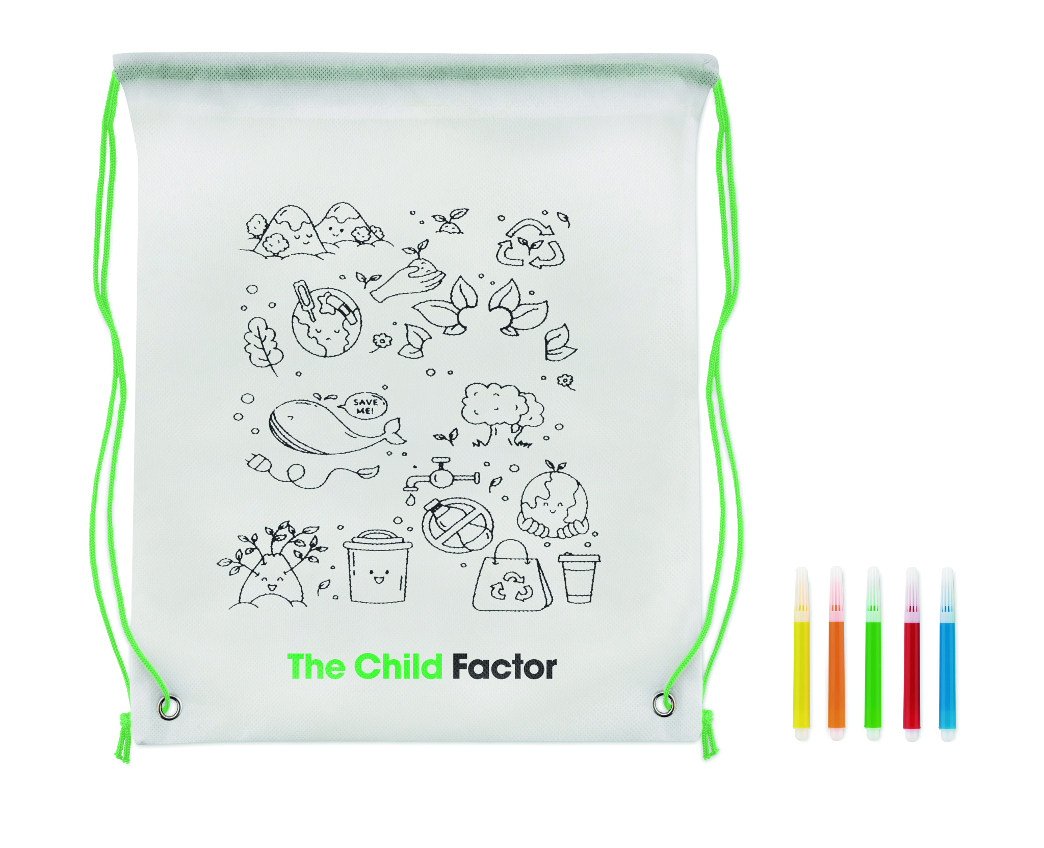 Нетканый мешок на шнурке с 5 маркерами. 80 гр / м².