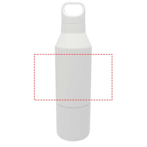 Бутылка из нержавеющей стали с двойными стенками и медной изоляцией, сертифицированная согласно RCS, со съемной крышкой. Эта многофункциональная бутылка помещается в боковой карман рюкзака и имеет удобную ручку для переноски, встроенную в крышку. Прочное порошковое покрытие снаружи. Напитки останутся горячими в течение 12 часов и холодными в течение 24 часов. Поставляется в подарочной коробке из переработанного картона. Объем бутылки: 600 мл. Объем кружки: 300 мл.