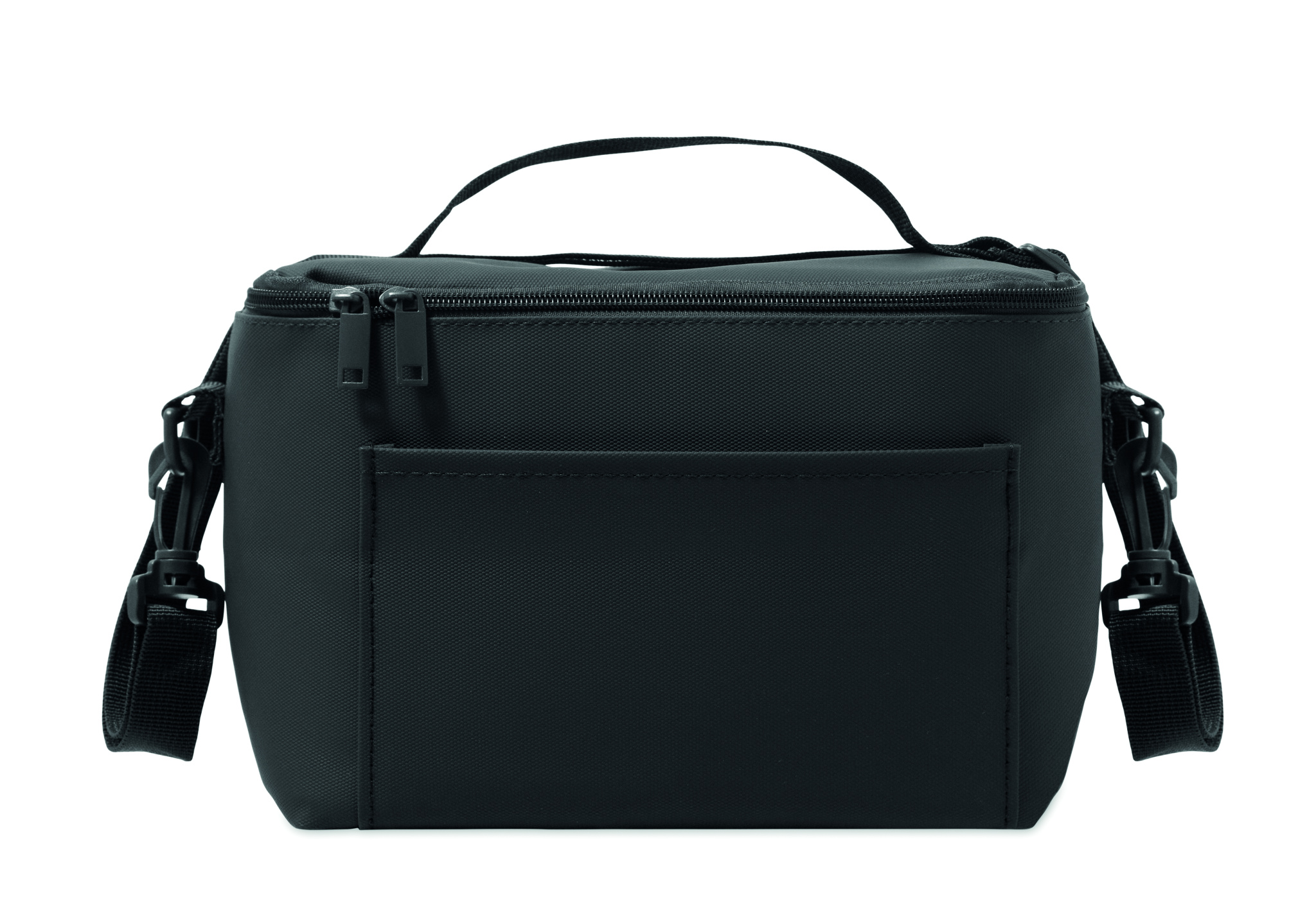 Cooler bag in PU with 100g RPET polyester lining. Including 1 front pocket, handle and shoulder strap. Isolation PE foam with PEVA lining. Capacity 5.5l.