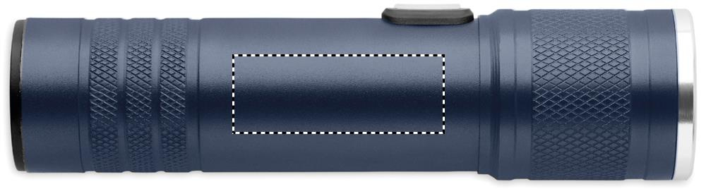 Rechargeable and expandable COB light torch in recycled aluminium. 100 lumen with 3 light settings and zoom function. Built-in 800 mAh rechargeable battery. Charging cable included.