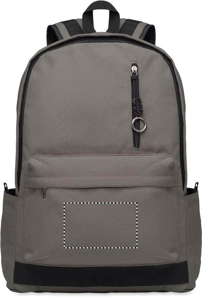 Рюкзак для 15-дюймового ноутбука из переработанного хлопка. Большой передний карман на молнии с внутренним отделением для ноутбука. Маленький передний карман на молнии. Два боковых накладных кармана. Спинка и плечевые ремни, задняя панель и дно с мягкой подкладкой. 450 гр/м².