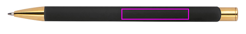 Шариковая ручка из алюминия с золотыми аппликациями, резиновым покрытием и синим стержнем большой емкости. Ваш логотип будет нанесен лазером на правую сторону зажима, он будет золотистого цвета.