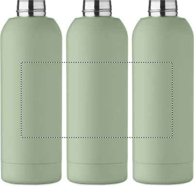 Single wall bottle recycled stainless steel (90% recycled stainless steel and 10% stainless steel) with rubber finish and acacia wooden lid finish. Leak-free. Capacity: 700 ml. As this is a single walled bottle heat transfer can still occur.