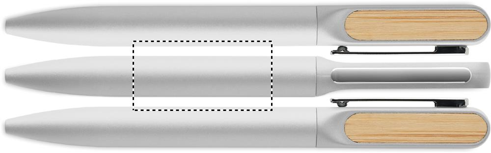 Twist ballpen with recycled aluminium barrel, recycled ABS twist part, and metal clip with bamboo detail. Blue ink.