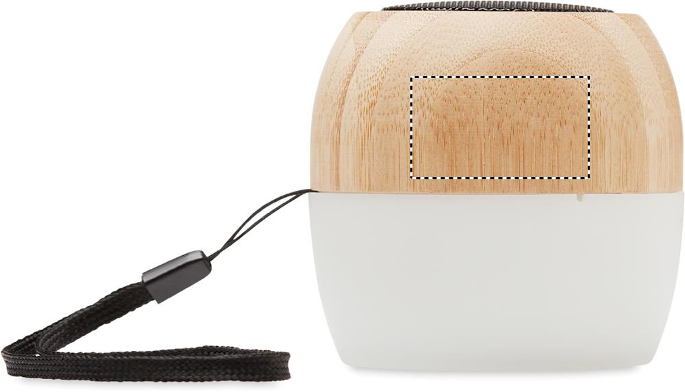 5.0 trådlös högtalare i bambu och PP med 4-färgat stämningsljus och bärrem. Inbyggt uppladdningsbart Li-POL 300 mAh-batteri. Uteffekt: 3W, 4 Ohm. Speltid ca. 2 timmar.