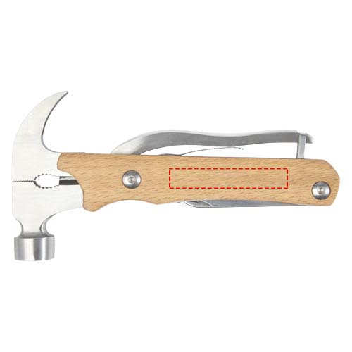 Starkt, hållbart och kompakt multiverktyg tillverkat av kvalitativt rostfritt stål med handtag av bokträ. Ett måste för alla scouter, händiga och andra överlevnadsentusiaster eller utomhusentusiaster. Det bokträ som används är från hållbara, miljömässigt och socialt ansvarsfulla källor. Multiverktyget har en öppnad storlek på 24 x 13 x 2 cm, en sluten storlek på 17,5 x 9 x 2 cm och erbjuder 10 funktioner: klo, stora flacktänger, standardtänger, avbitartänger, hammare, fil, platt skruvmejsel, stjärnskruvmejsel, såg, kniv och lås. Levereras med en bruksanvisning och är förpackad i en återvunnen presentförpackning av kartong med en storlek på 20,5 x 10 x 3,5 cm. Lasergravyr rekommenderas som ett hållbart tryckalternativ.