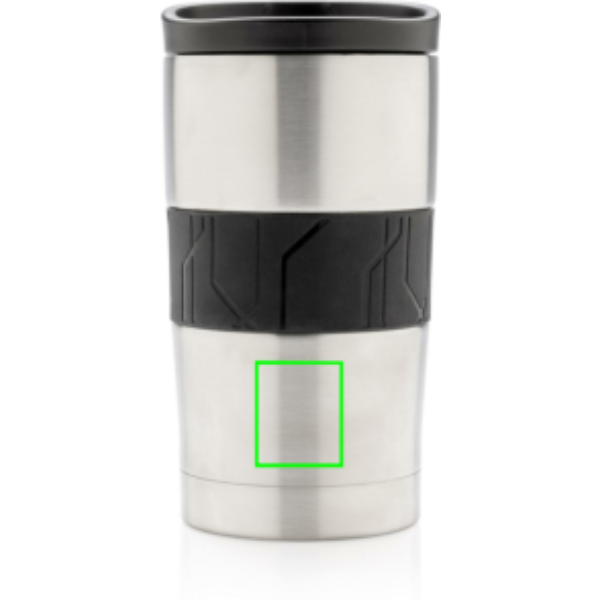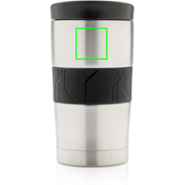 Läckagesäker vakuumisolerad mugg i dubbelväggig 304 stainless steel med silikongrepp och skjutlock. Kan diskas i maskin och passar i de flesta kaffemaskiner. Praktisk enhandsanvändning. Volym: 300ml.