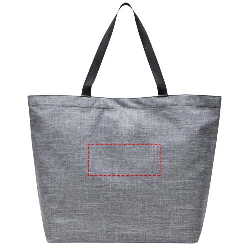 Enkel design, återvunna material – den här användbara hjälten är din allt-i-allo-tygväska. Väskan är tillverkad av EcoSystem™ 600D-tyg och -foder, som båda är tillverkade av 100 % återvunna vattenflaskor. Tygväskan har en snäppstängning i metall och bärhandtag i slät väv för ultimat komfort.