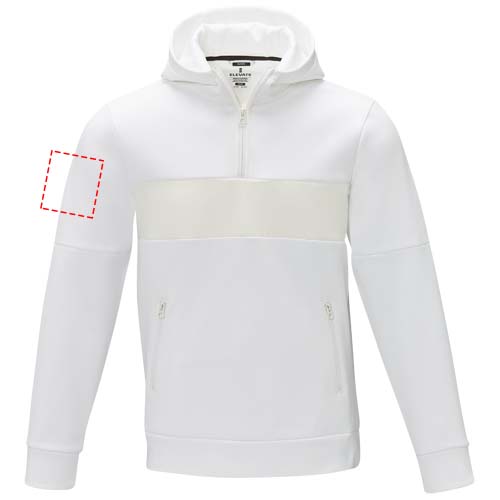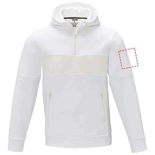 Sayan herrtröja med halv dragkedja och huva i anorakmodell - en unik kombination av prestanda och stil. Anorakdesignen kombinerar mode och funktion på ett sömlöst sätt och har en kvarts dragkedja för mångsidiga lager. Tillverkad av en 350 g/m²-blandning av polyester och Sorona®-stickning. Sorona®-fibern förbättrar jackans miljövänlighet genom att integrera ett hållbart element utan att kompromissa med prestandan. Kontrasttyget på frontpanelen, tillverkat av 280T ripstop nylon, bidrar till designen med sin hållbarhet och struktur och är den perfekta platsen för att visa upp ditt varumärke. Oavsett om du ger dig ut på ett utomhusäventyr eller bara tar dig igenom vardagen kombinerar Sayan huvtröja mode med funktion på ett enkelt sätt.